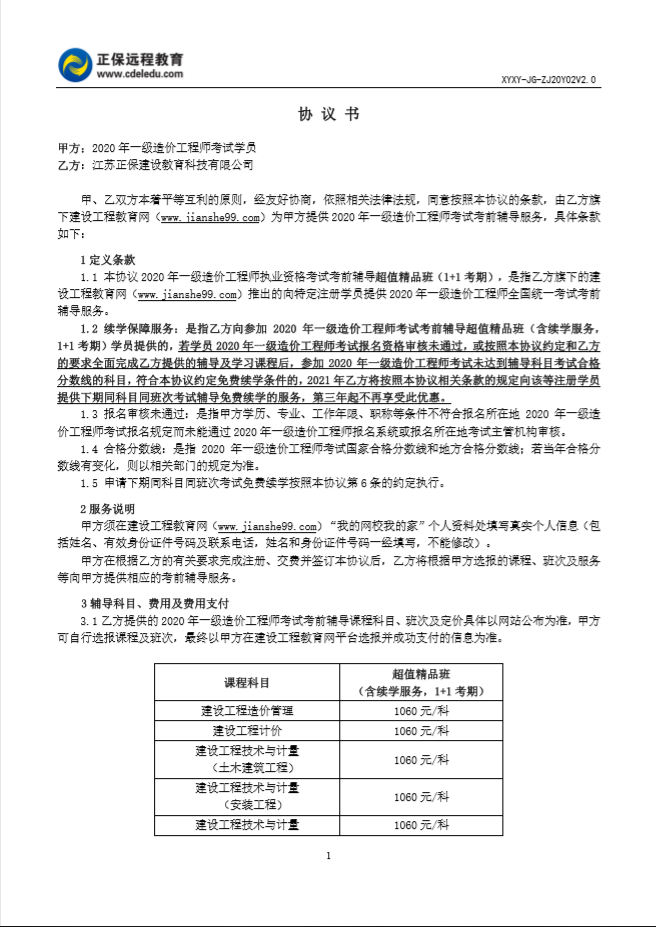 一級造價工程師協(xié)議書