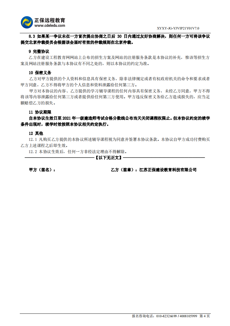 2021年一級建造師VIP特訓(xùn)營(單科)協(xié)議書
