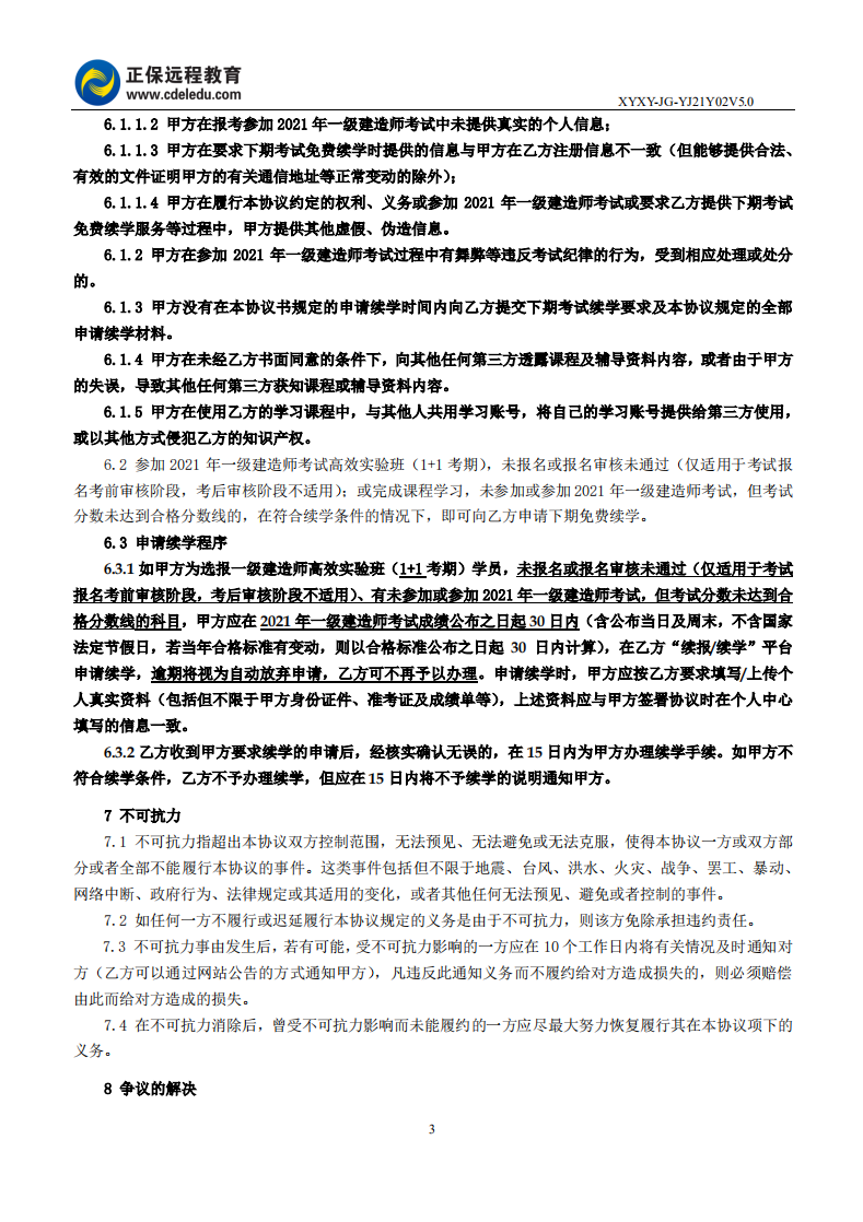 2021年一級建造師高效實驗班續(xù)學協(xié)議書