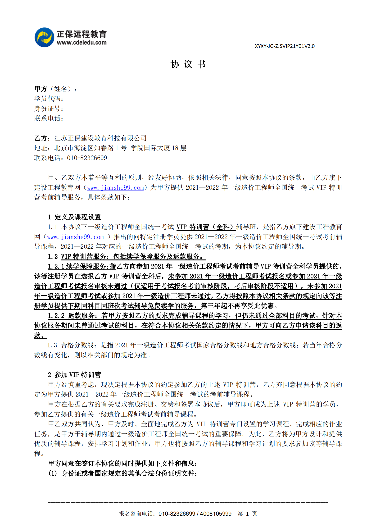一級造價(jià)工程師協(xié)議書