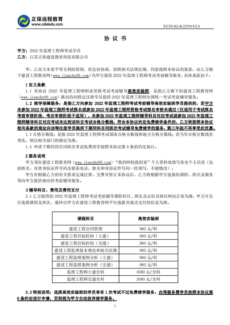 2022年監(jiān)理工程師協(xié)議書