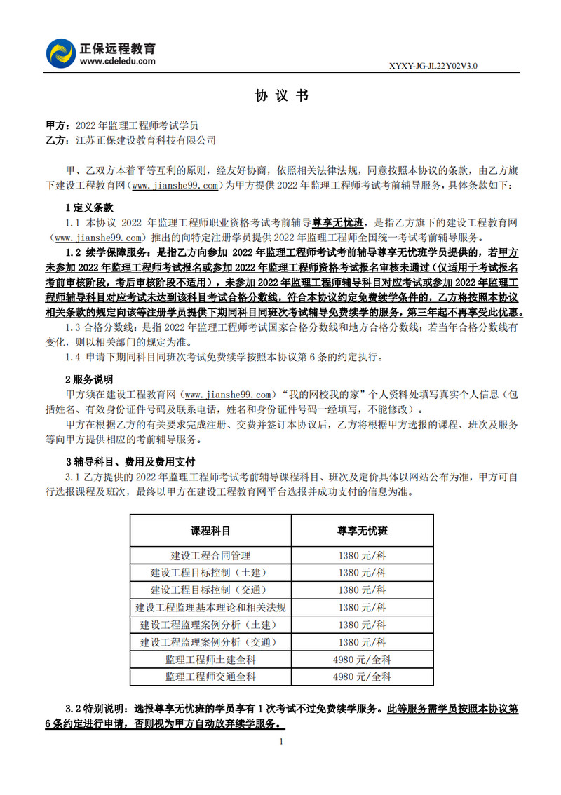 2022年監(jiān)理工程師協(xié)議書