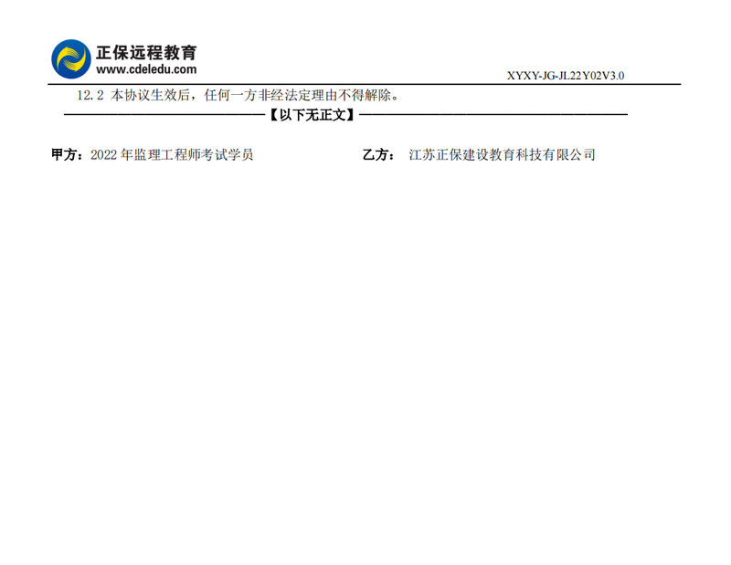 2022年監(jiān)理工程師協(xié)議書