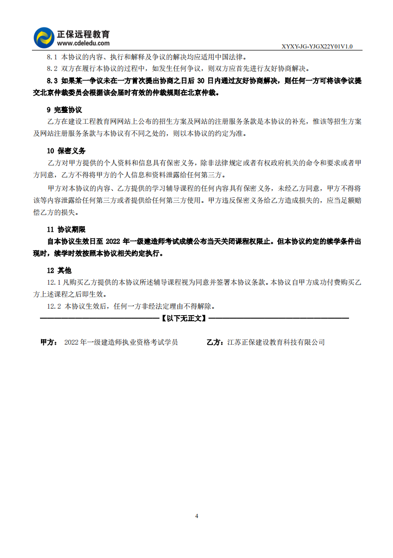 2022年一級建造師高效實驗班續(xù)學(xué)協(xié)議書