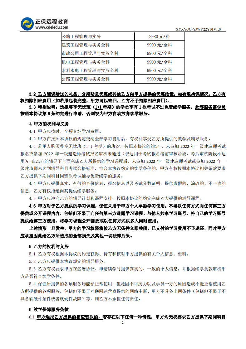 2022年一級建造師尊享無憂班續(xù)學(xué)協(xié)議書