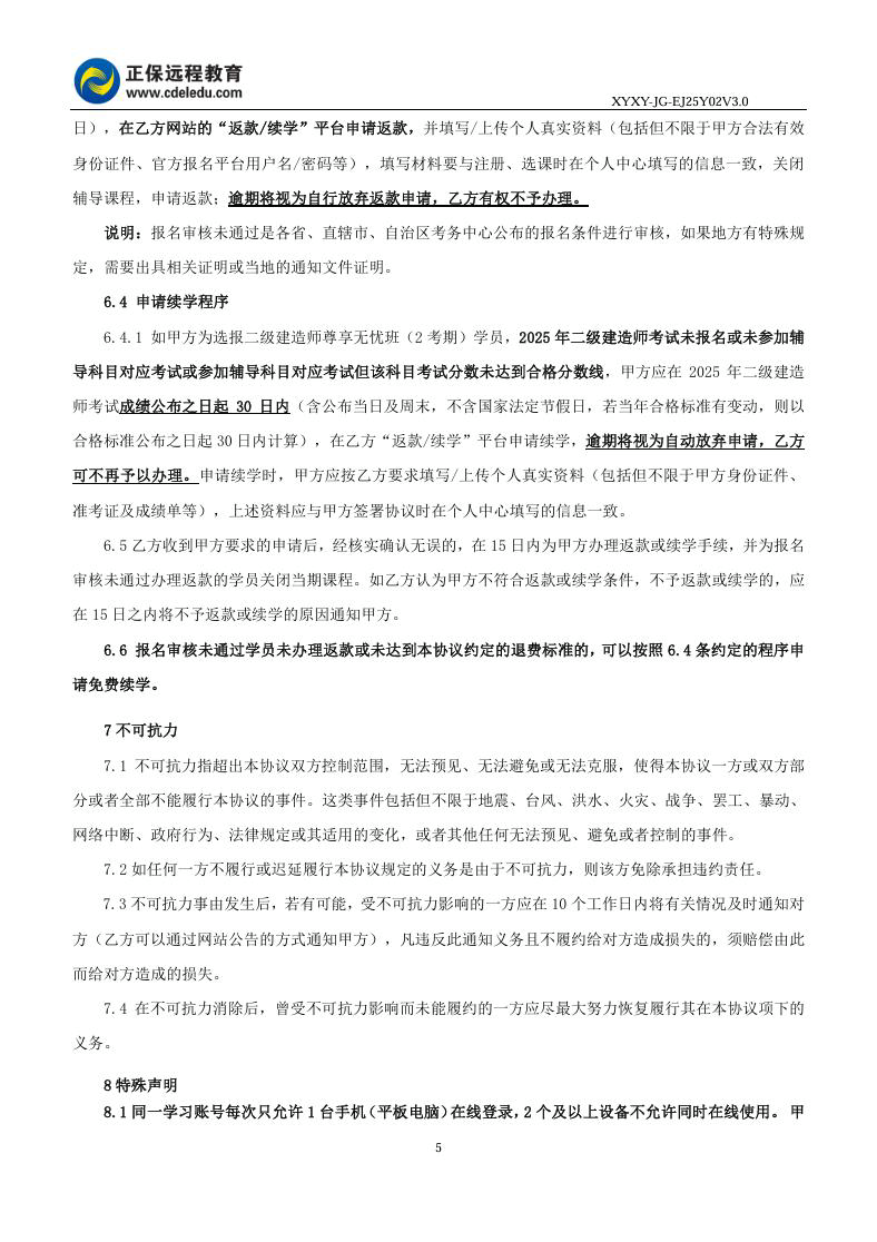 2025年二級(jí)建造師尊享無憂班(2考期)協(xié)議書