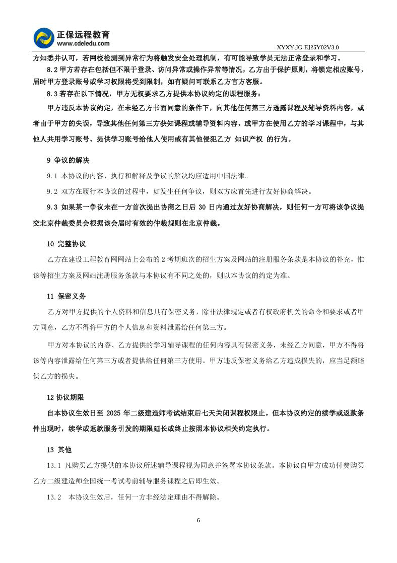 2025年二級(jí)建造師尊享無(wú)憂班(2考期)協(xié)議書