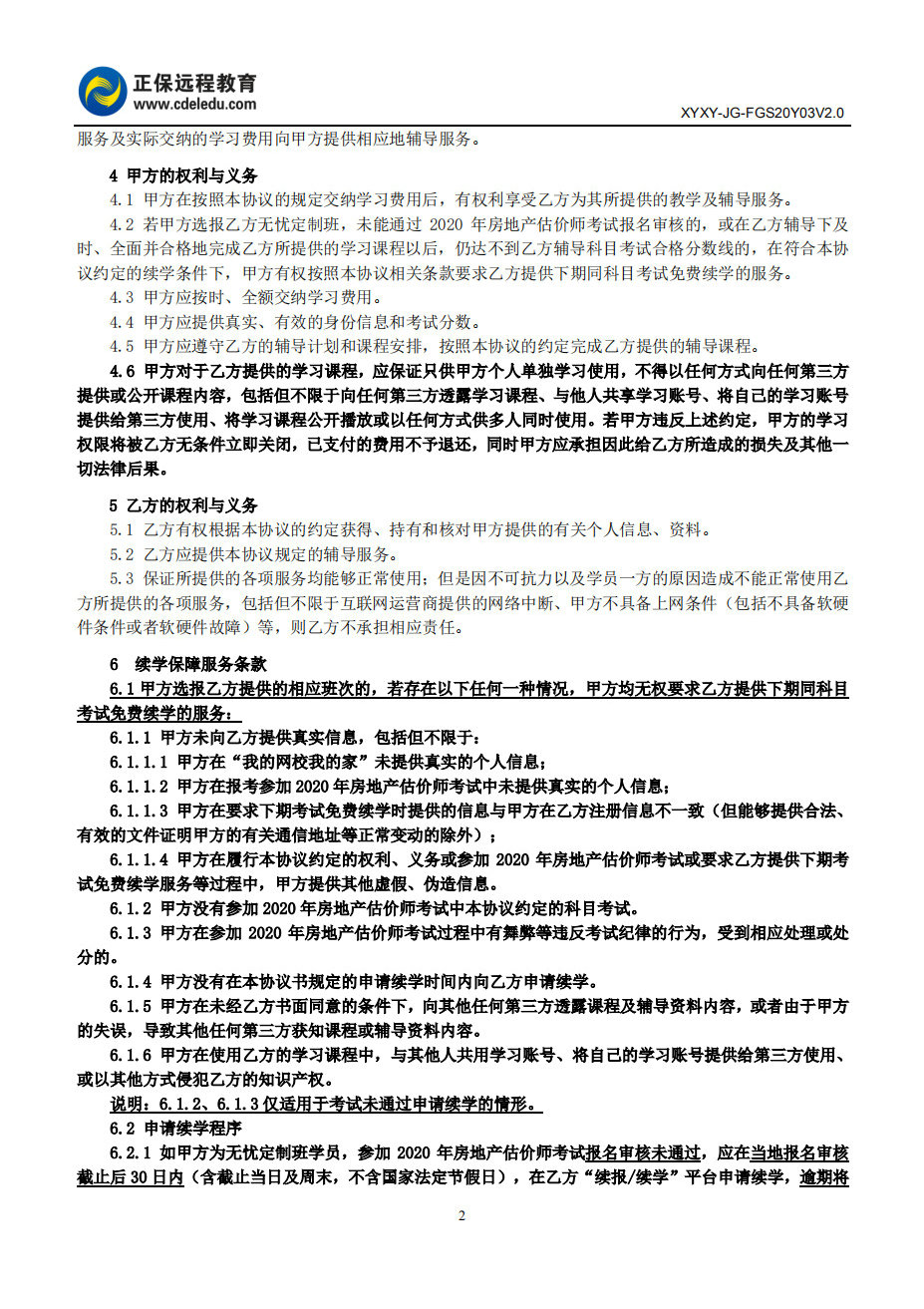 2020年房地產(chǎn)估價師無憂定制班協(xié)議書