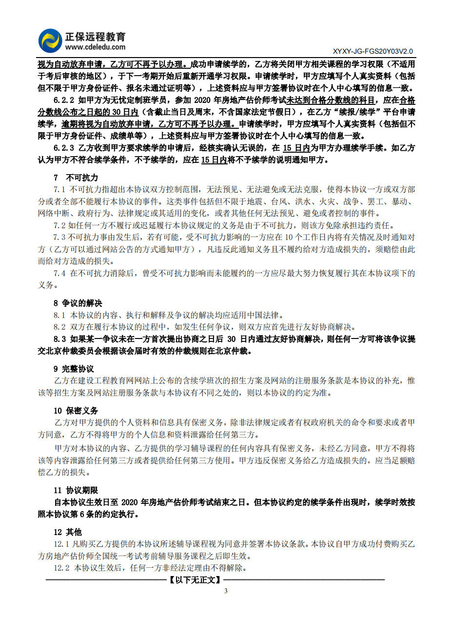 2020年房地產(chǎn)估價師無憂定制班協(xié)議書