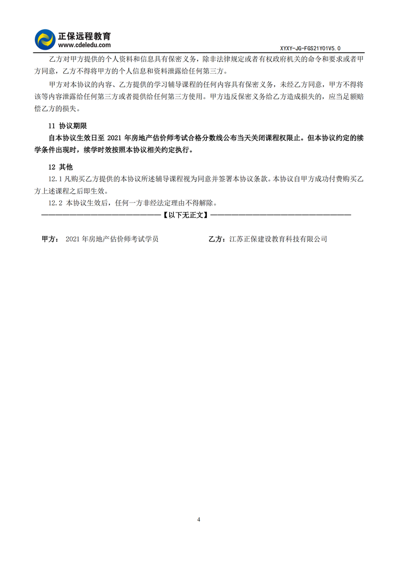2021年房地產(chǎn)估價師高效實驗班協(xié)議書