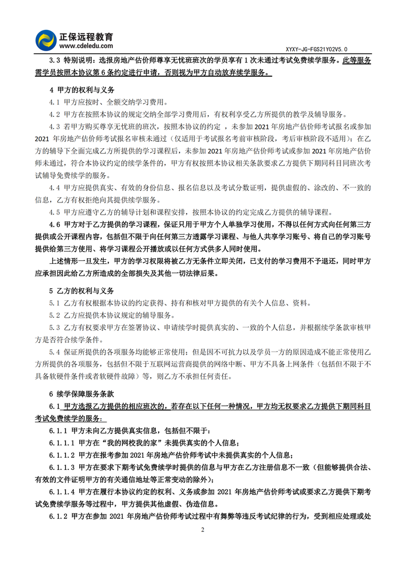 2021年房地產(chǎn)估價(jià)師尊享無(wú)憂班協(xié)議書(shū)