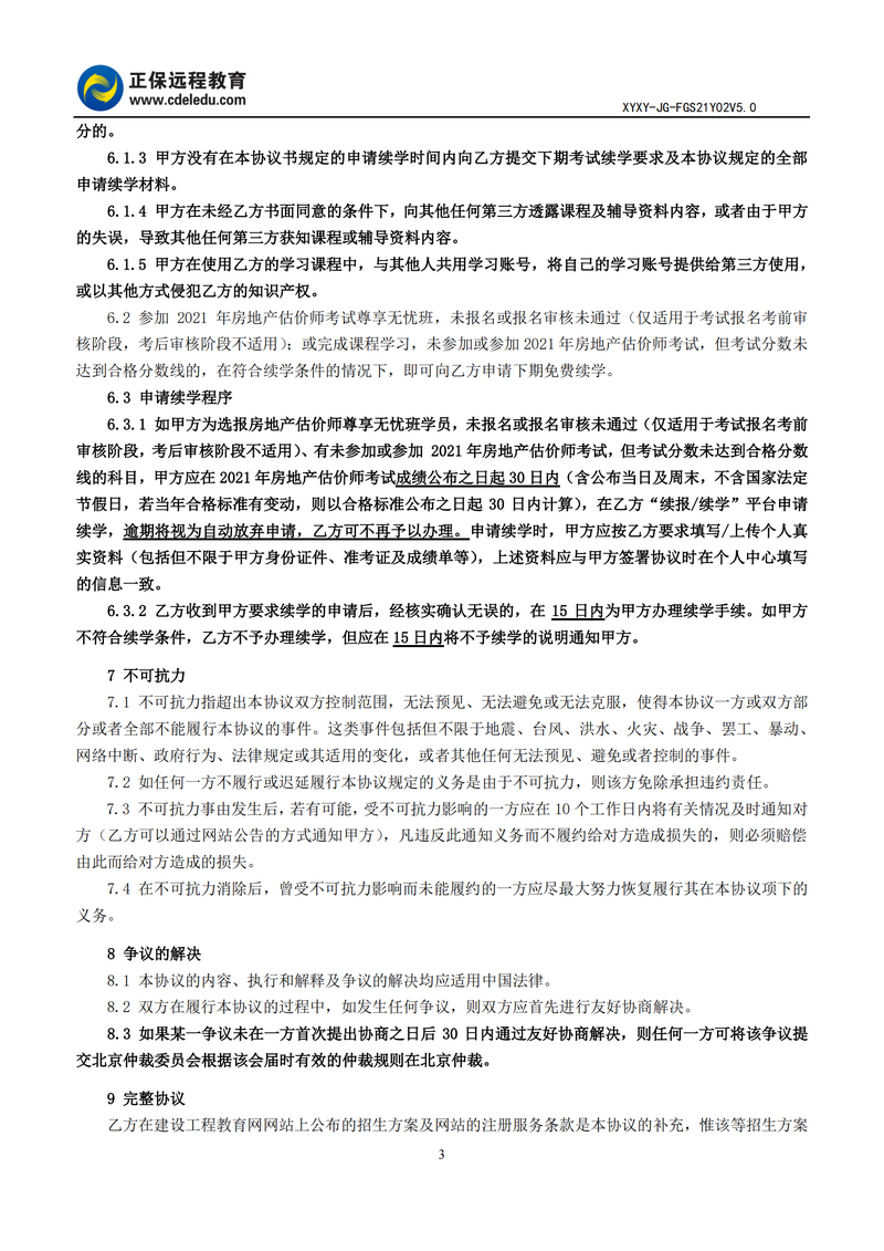 2021年房地產(chǎn)估價(jià)師尊享無(wú)憂班協(xié)議書