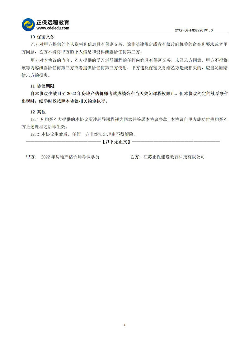 2022年房地產(chǎn)估價(jià)師高效實(shí)驗(yàn)班協(xié)議書(shū)