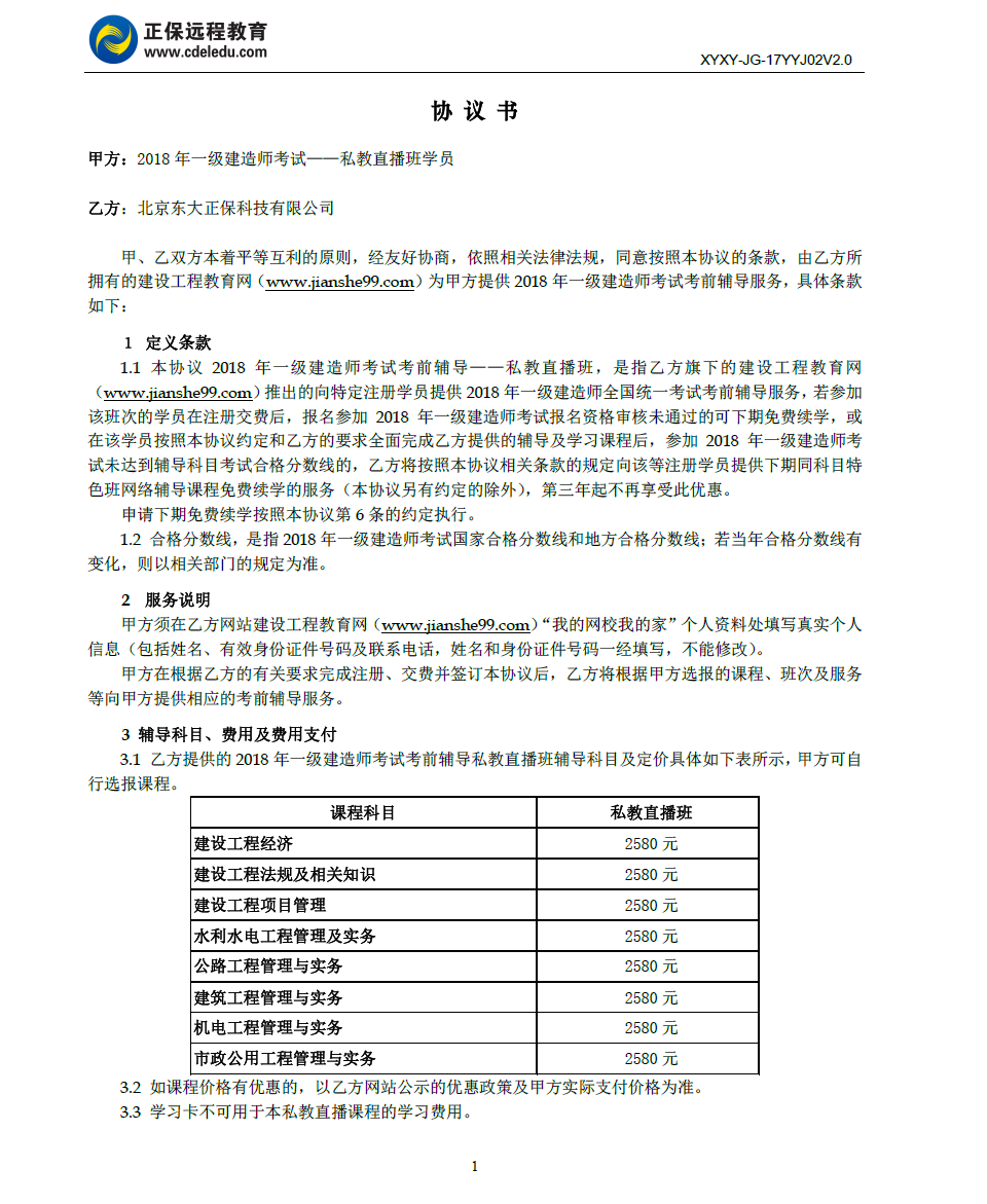 一級(jí)建造師私教直播班協(xié)議書(shū)