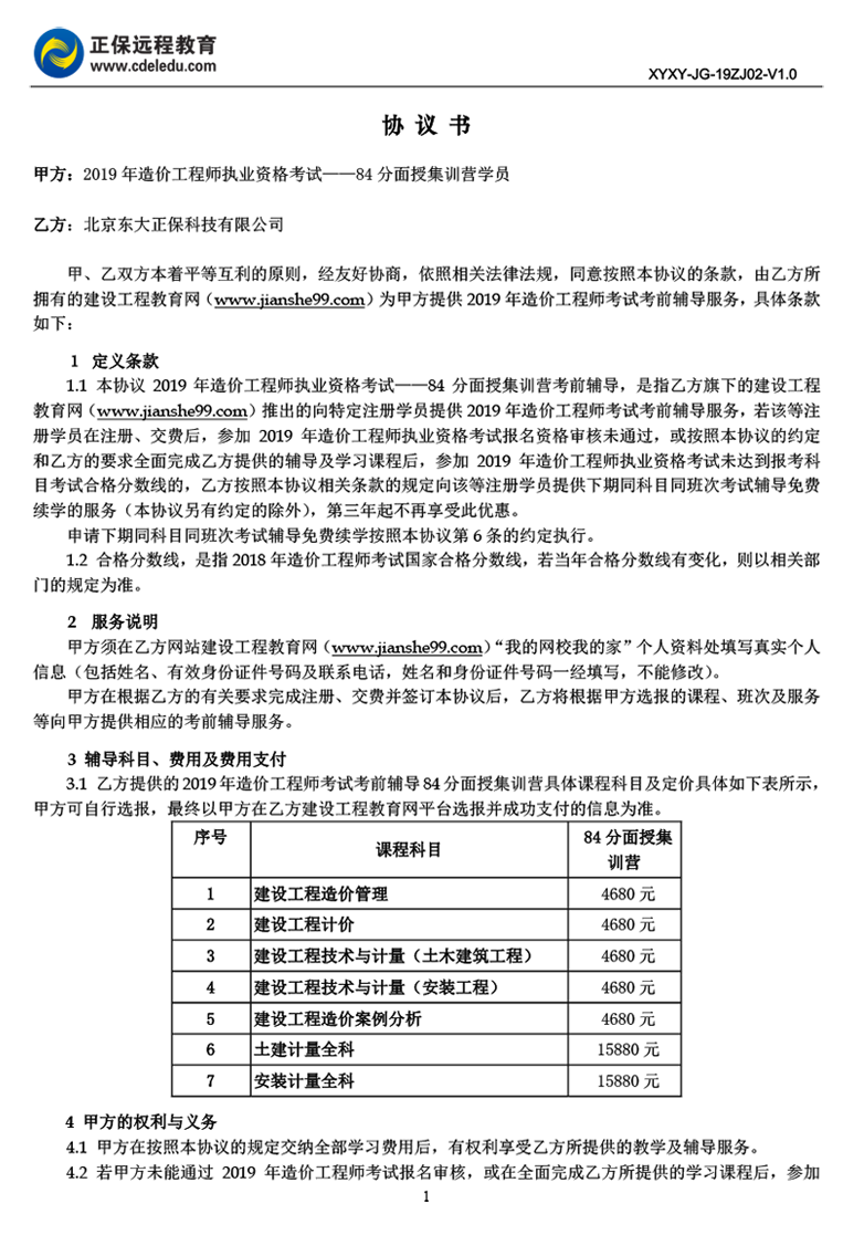 一級造價(jià)工程師協(xié)議書