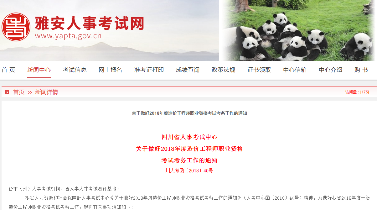 雅安關(guān)于做好2018年度造價工程師職業(yè)資格考試考務(wù)工作的通知