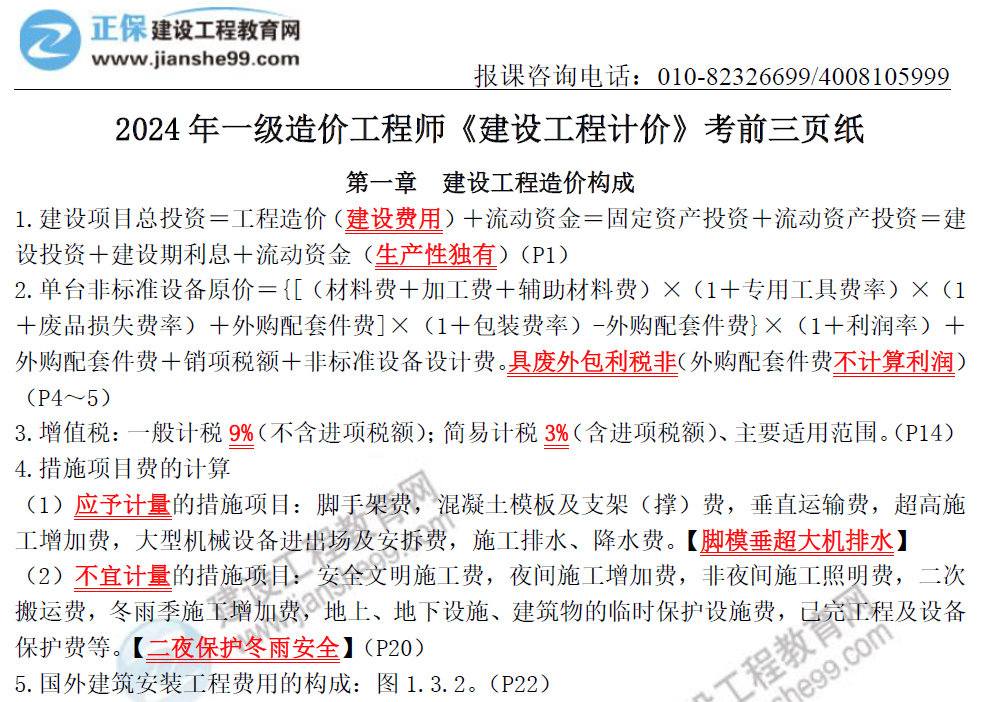 【三頁(yè)紙免費(fèi)領(lǐng)】2024年一級(jí)造價(jià)工程師考前神助攻!