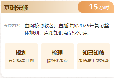 基礎先修:由網(wǎng)校助教老師直播講解2025年復習整體規(guī)劃,點撥知識點記憶要點。