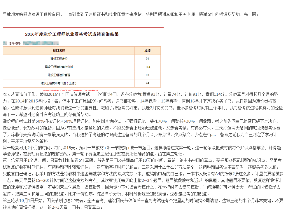建設(shè)工程教育網(wǎng),造價師一年過四門的經(jīng)驗分享 !