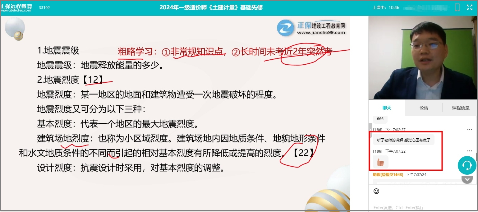 魏霖陽老師在講課之初為考生講解了《土建計量》的科目定位、知識框架、分值分布,指出了備考路上的障礙并提出了解決方法,并就學(xué)習(xí)重點進行揭秘,總結(jié)了學(xué)習(xí)通關(guān)三要點。學(xué)員聽完直呼“心里有底了”!