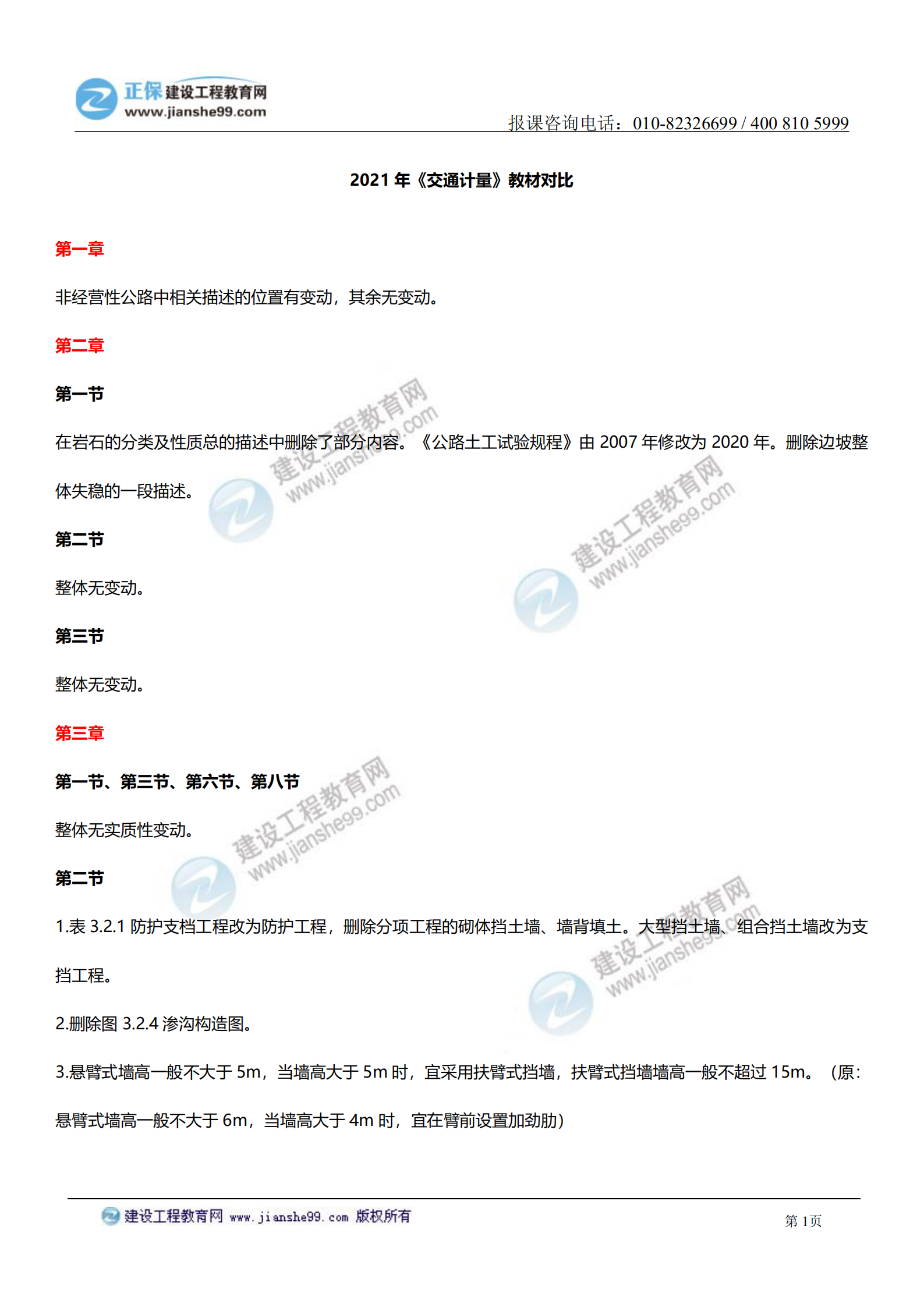 2021年一級造價師《交通計量》教材變化對比