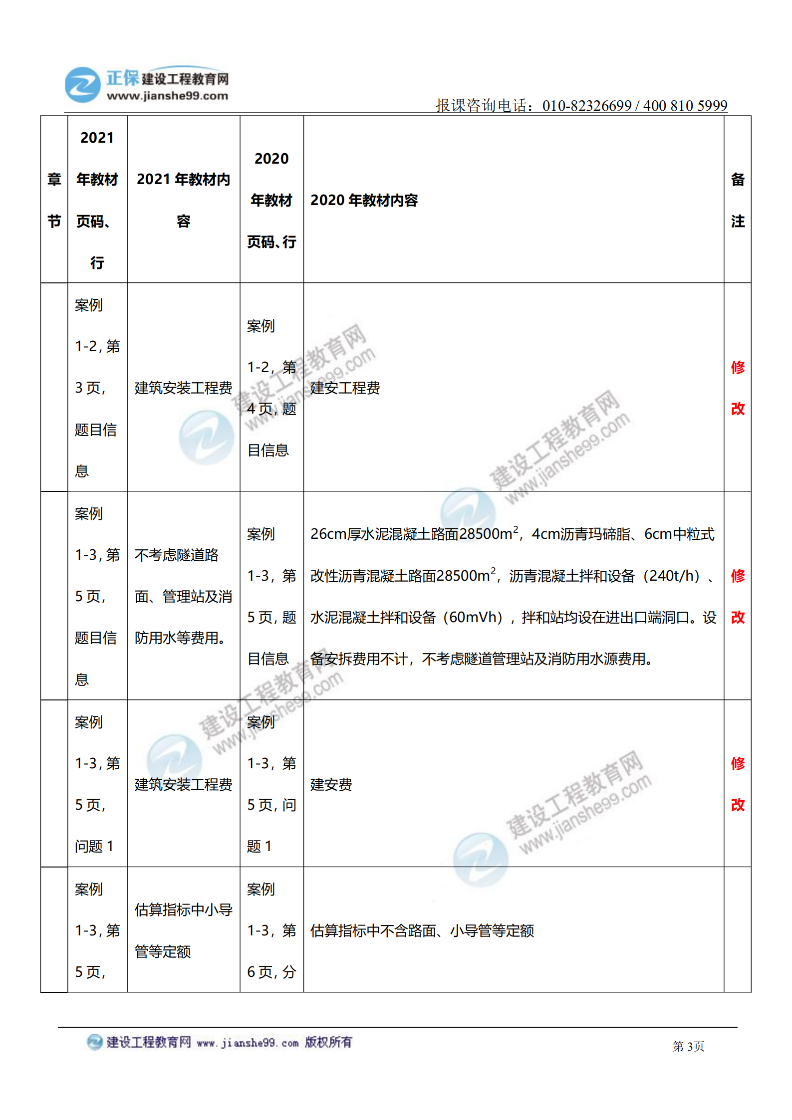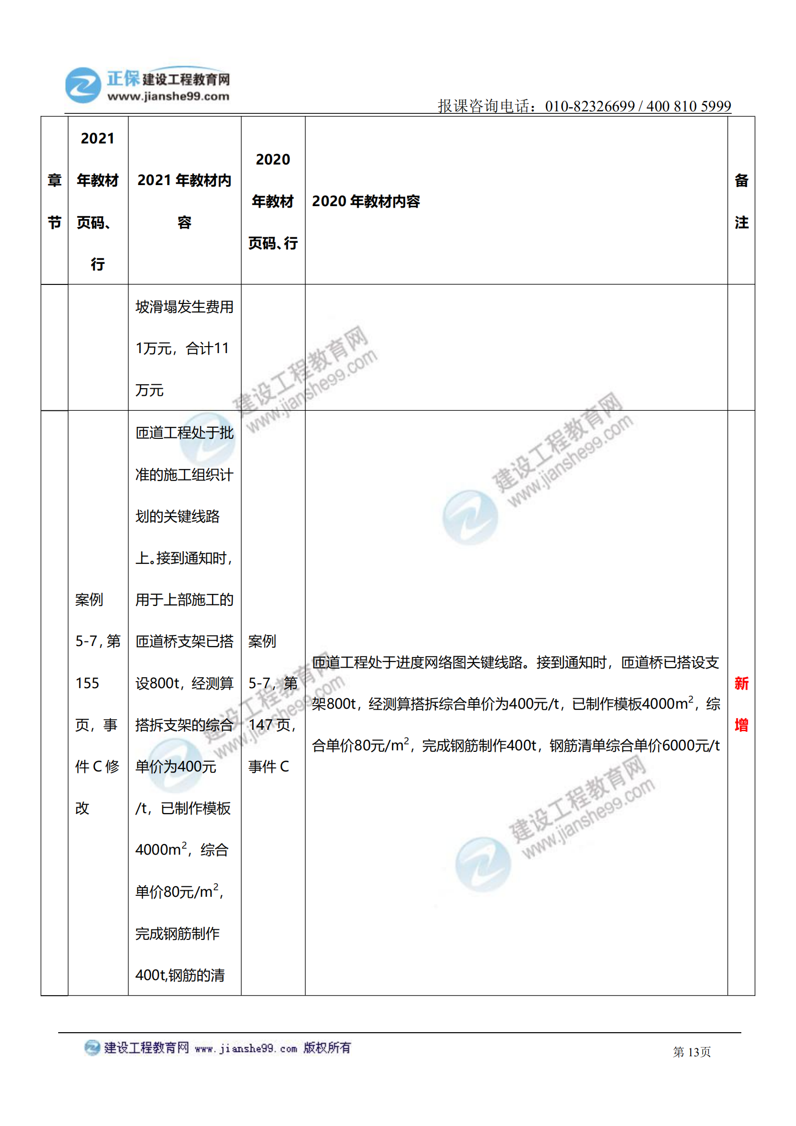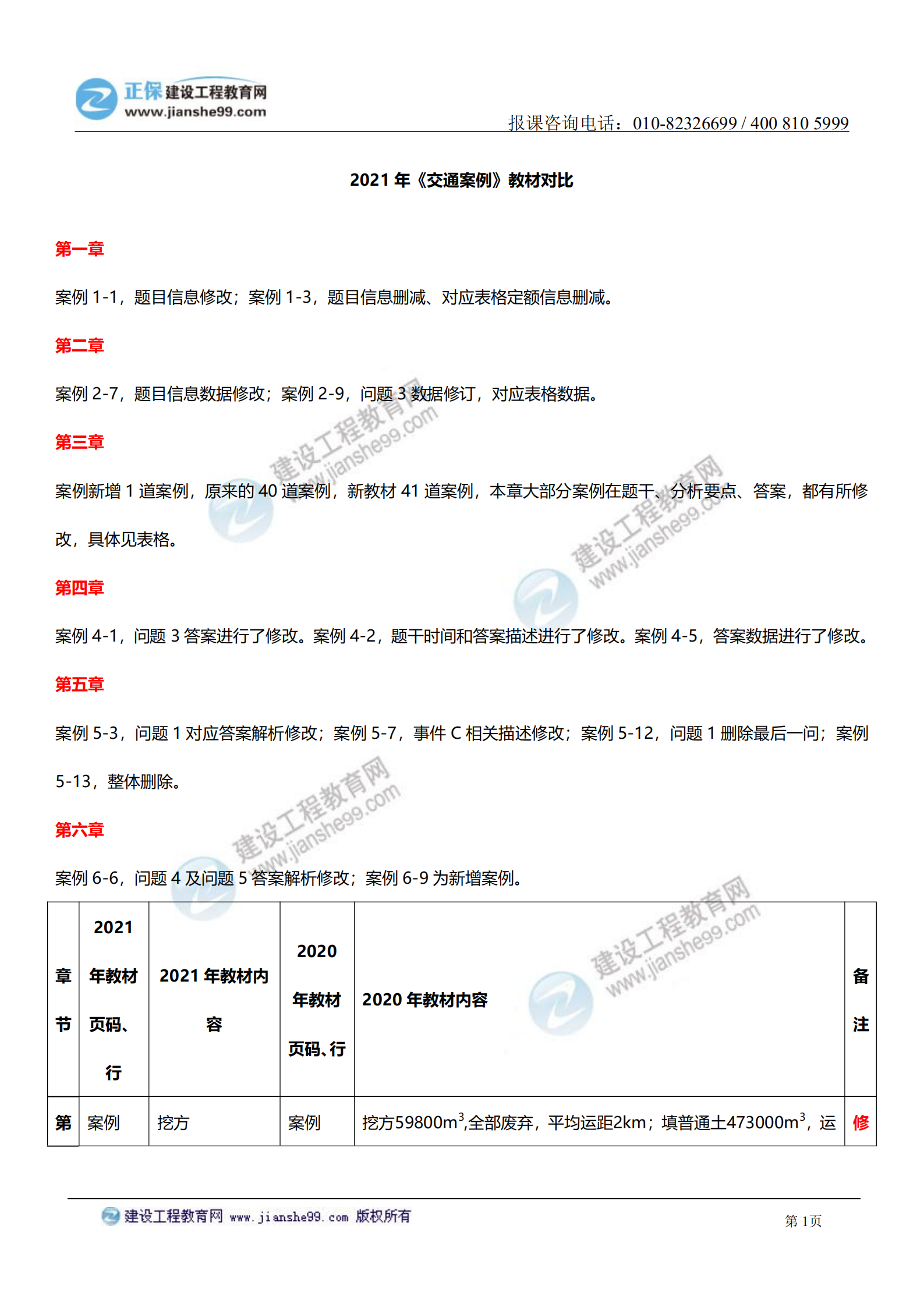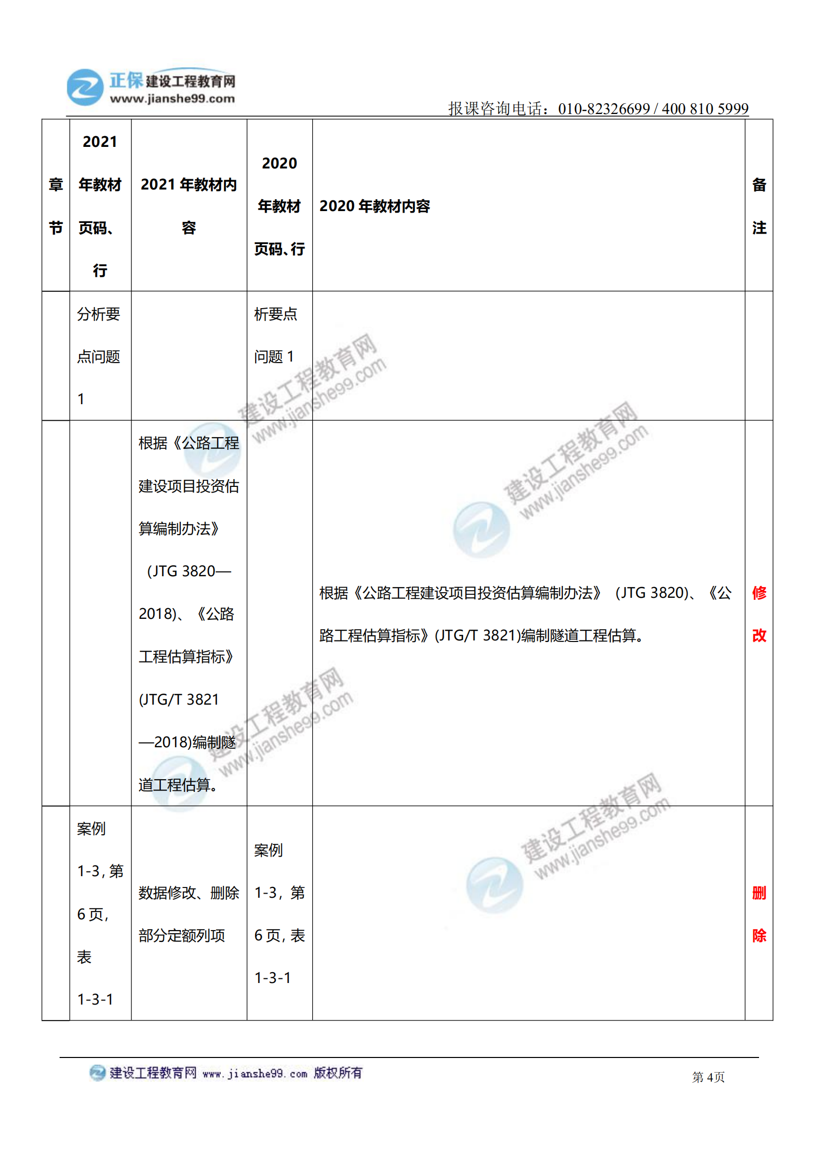 2021年一級(jí)造價(jià)師《交通案例》教材變化對(duì)比