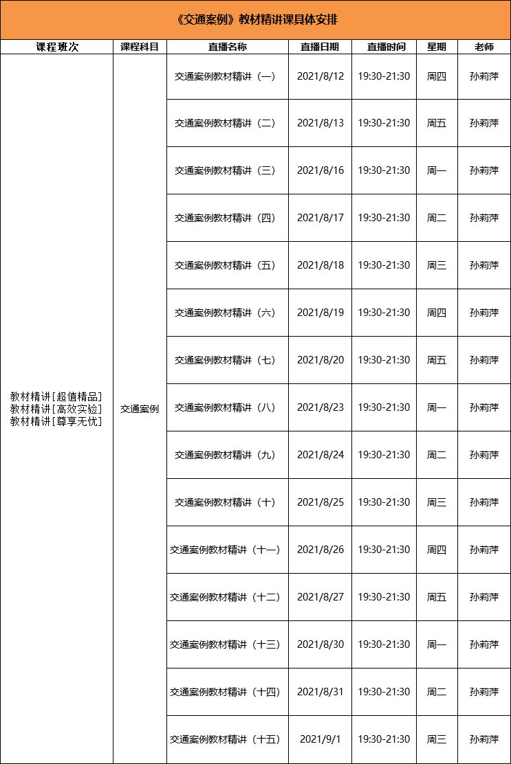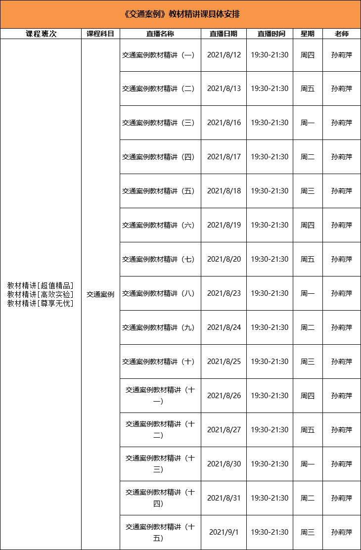 目前疫情形勢嚴(yán)峻,孫莉萍老師所在小區(qū)管控,無法為大家錄制教材精講班課程,但老師和網(wǎng)校為了讓同學(xué)們盡快聽新課,快速掌握備考內(nèi)容,為同學(xué)們安排了教材精講直播課,由美女老師孫莉萍通過直播領(lǐng)學(xué)的方式帶領(lǐng)大家學(xué)習(xí)!購買建設(shè)工程教育網(wǎng)交通全科超值精品班、高效實(shí)驗(yàn)班、尊享無憂班,交通案例單科超值精品班、高效實(shí)驗(yàn)班、尊享無憂班的學(xué)員均可聽課哦!