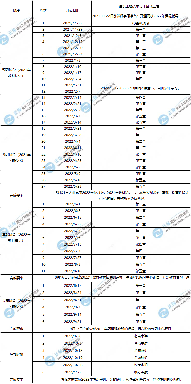 2022一級造價工程師土建計量學(xué)習(xí)計劃表!
