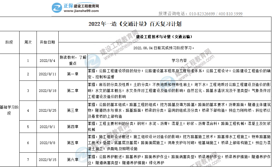 2022年一造《交通計量》百天復(fù)習(xí)計劃