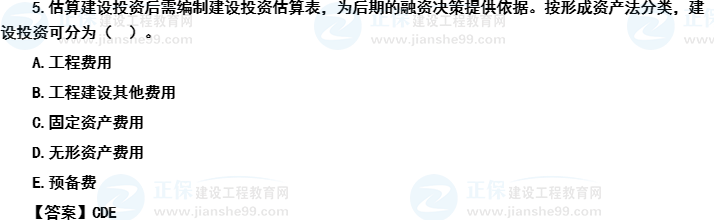 選項A屬于概算法分類的工程費用的構成,選項E屬于形成資產(chǎn)法分類中其他資產(chǎn)費用的內(nèi)容。