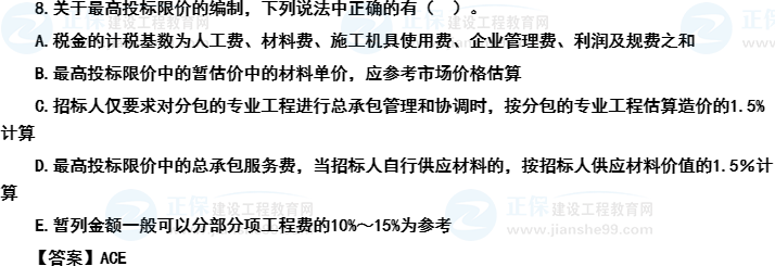 選項B描述有誤,正確的理解應該是最高投標限價中的暫估價的材料單價應按照工程造價管理機構發(fā)布的工程造價信息中的材料單價計算,如果未發(fā)布時,其單價才去參考市場價格估算。