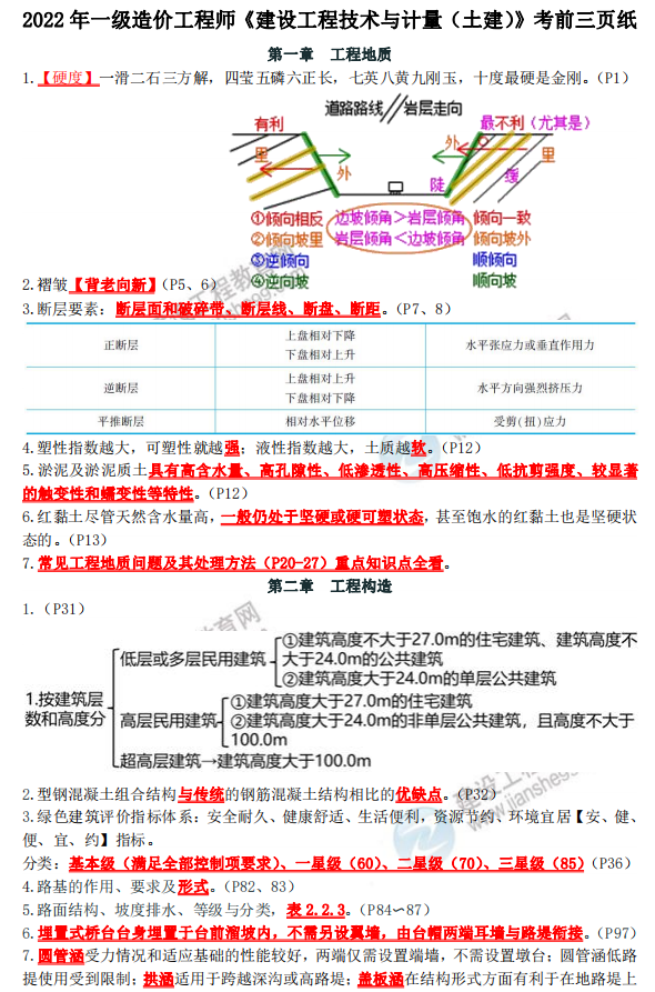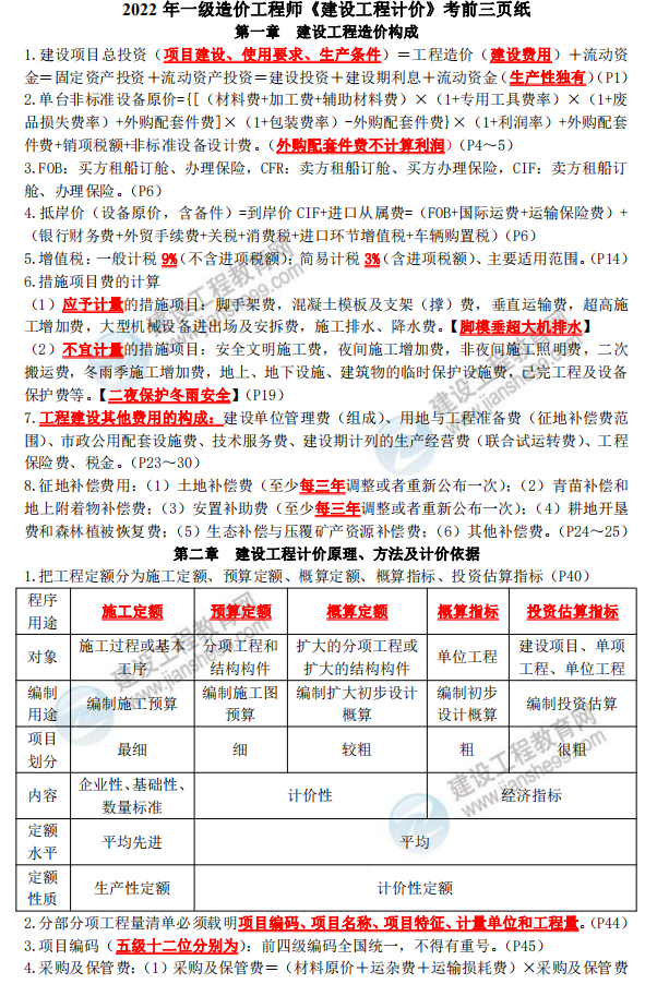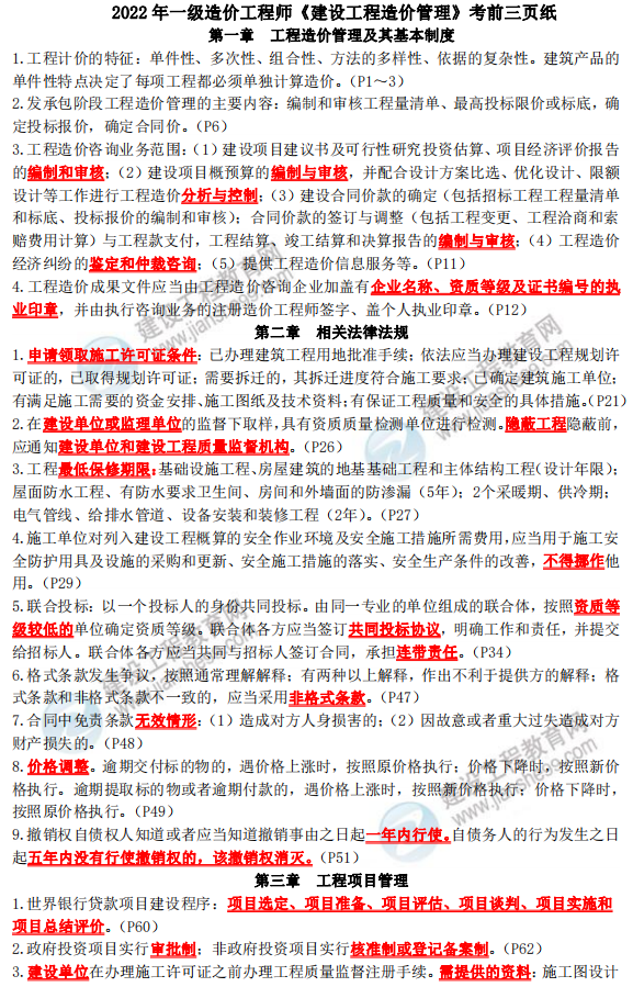 2022一級造價師考前三頁紙這根稻草要抓牢,速來免費領取!