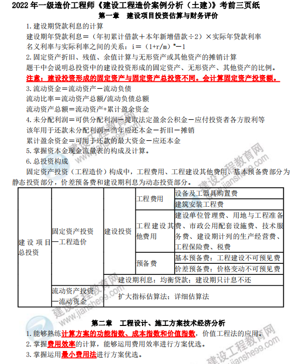 抓住考前稻草!2022一級造價師考前三頁紙 免費領??!