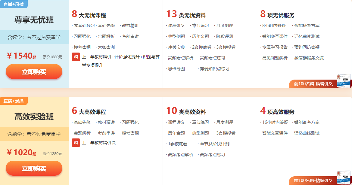 限時(shí)超值班、高效班、無(wú)憂班購(gòu)課前100名學(xué)員,贈(zèng)精編講義(紙質(zhì)版)