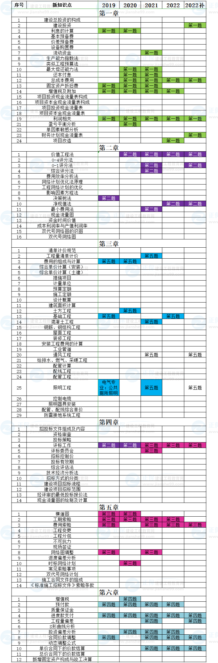 2019-2022年一級造價師土建/安裝分值分布匯總: