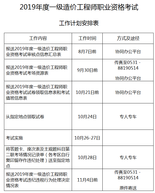 附件:1.2019年度一級(jí)造價(jià)工程師職業(yè)資格考試工作計(jì)劃安排表