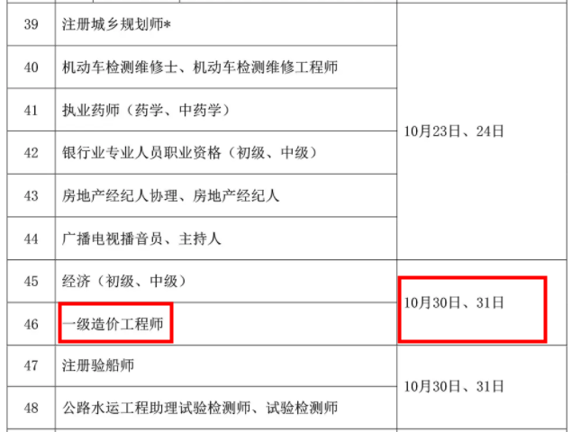 2021年一級造價師考試時間公布為10月30日、31日