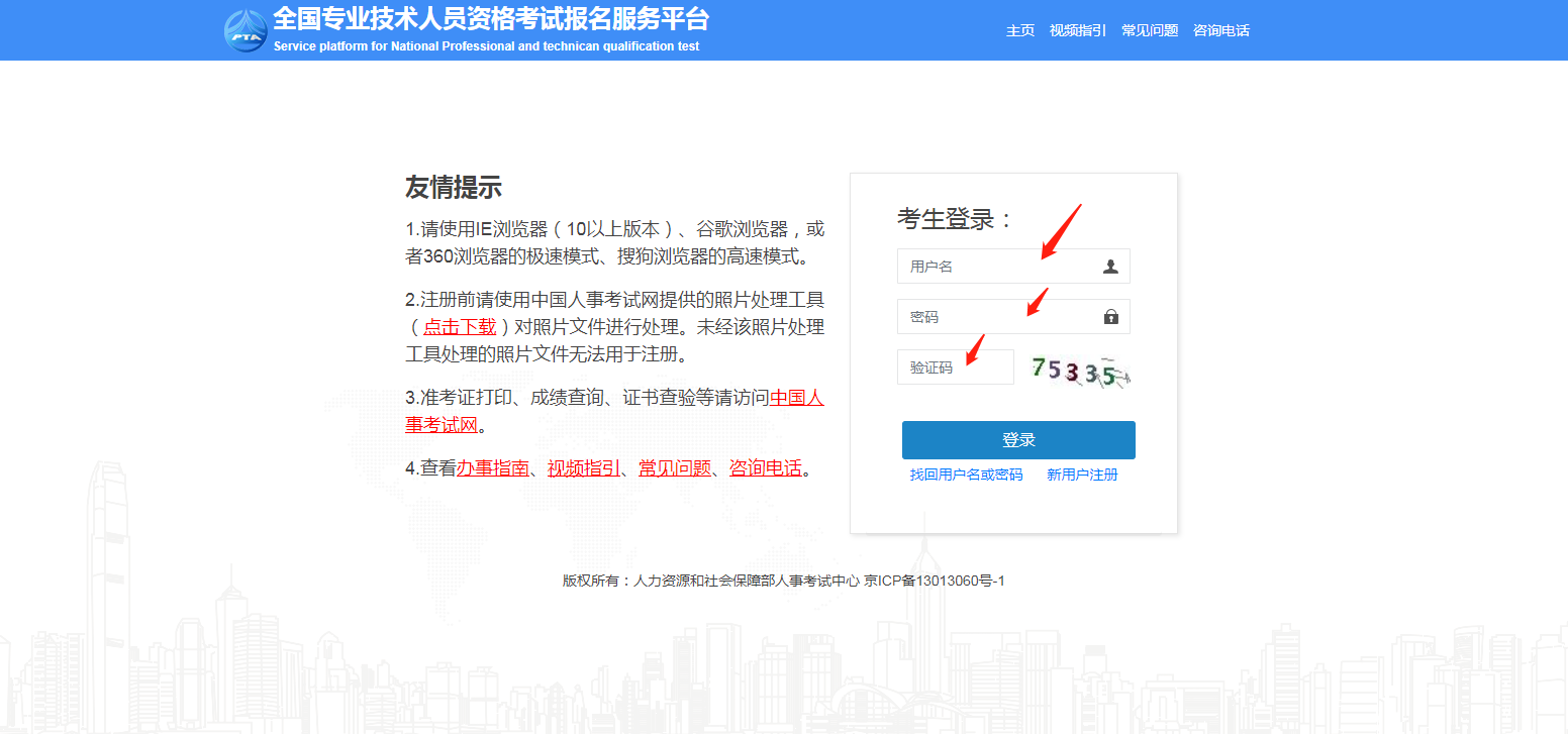 2.登錄全國專業(yè)技術(shù)人員資格考試報(bào)名服務(wù)平臺,新用戶需點(diǎn)擊“新用戶注冊”完成注冊后進(jìn)入系統(tǒng)。未完成學(xué)歷學(xué)位驗(yàn)證的考生,需先驗(yàn)證學(xué)歷學(xué)位信息。學(xué)歷學(xué)位信息未通過系統(tǒng)自動核驗(yàn)的需上傳學(xué)信網(wǎng)的學(xué)歷學(xué)位認(rèn)證報(bào)告(如何下載學(xué)歷學(xué)位認(rèn)證報(bào)告)。