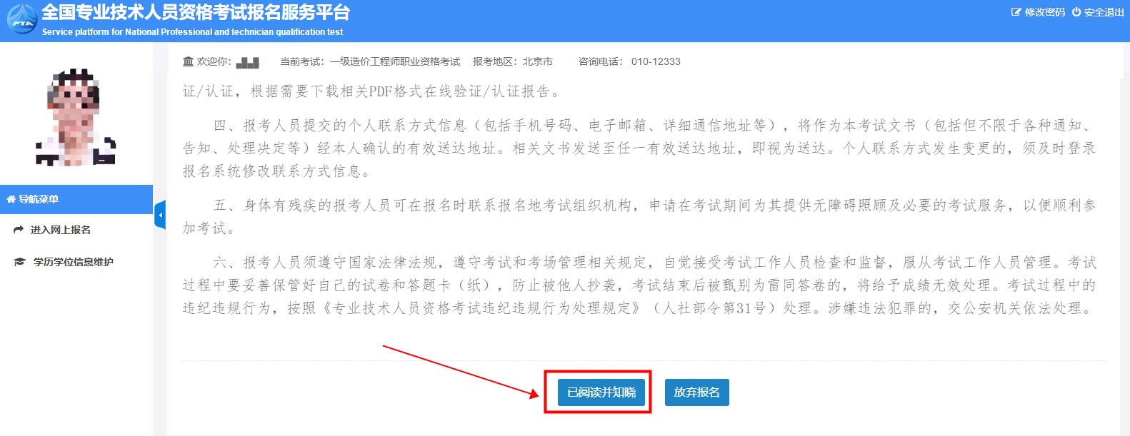 5.閱讀完報(bào)考須知(提醒:閱讀需要60秒);閱讀完畢點(diǎn)擊進(jìn)入。