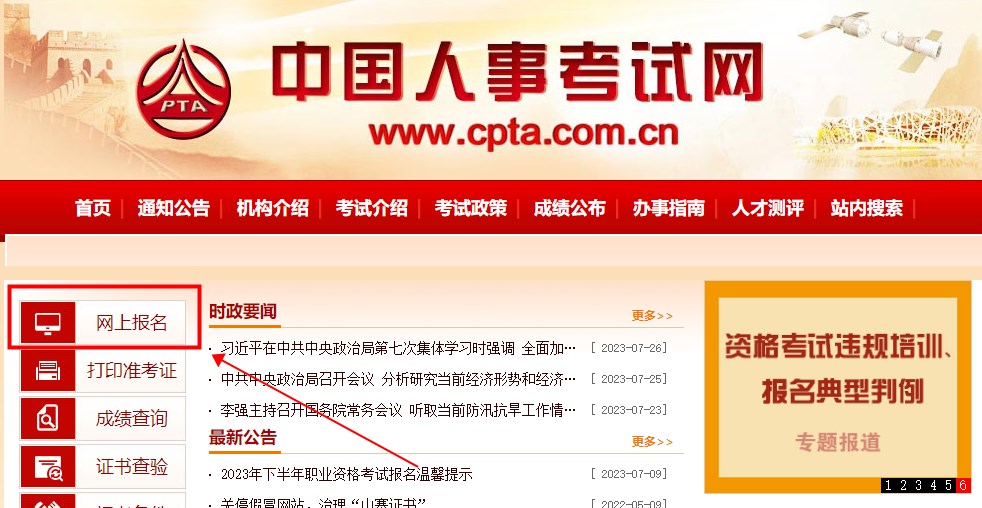 1.進(jìn)入“中國人事考試網(wǎng)”,點(diǎn)擊“網(wǎng)上報(bào)名”。