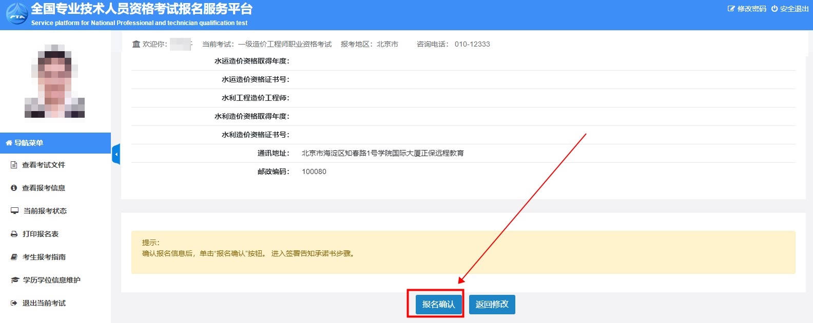考生注意:在繳納報(bào)名費(fèi)前的報(bào)名信息是可以修改的,一經(jīng)繳費(fèi),報(bào)名信息不可修改。