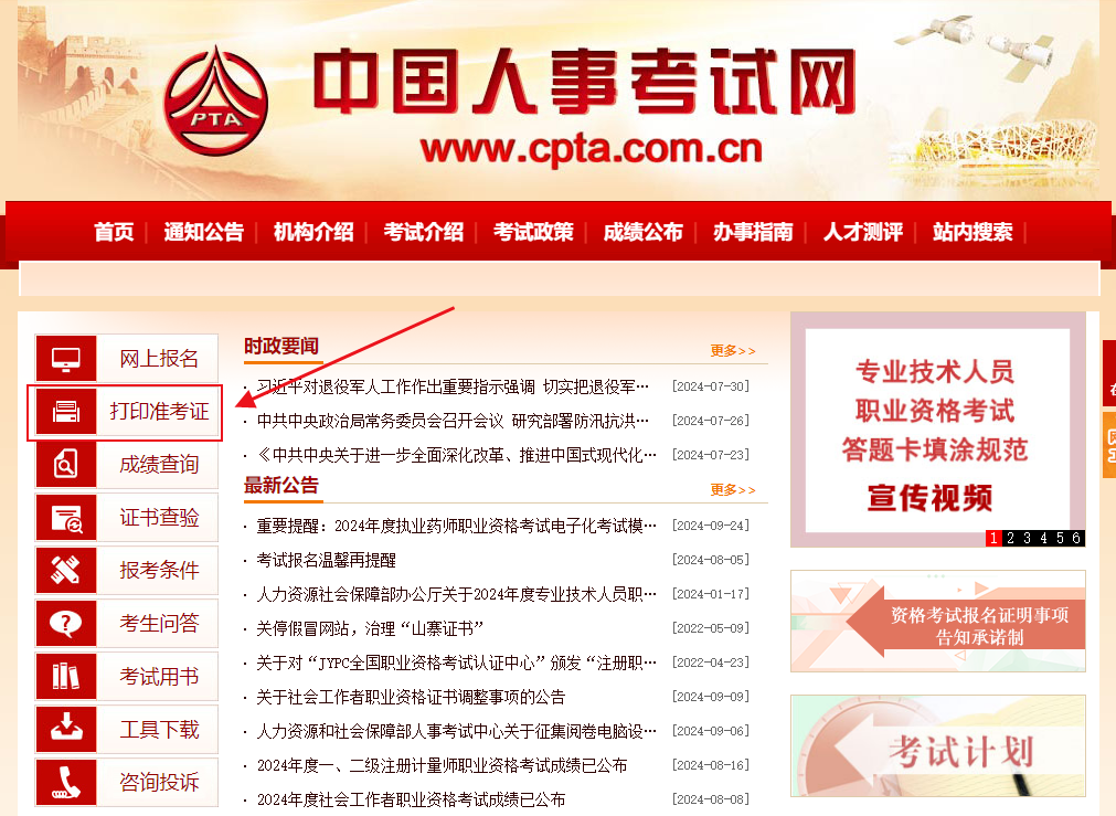 上海2024年一級(jí)造價(jià)工程師考試準(zhǔn)考證打印入口:中國(guó)人事考試網(wǎng)(http://www.cpta.com.cn/)