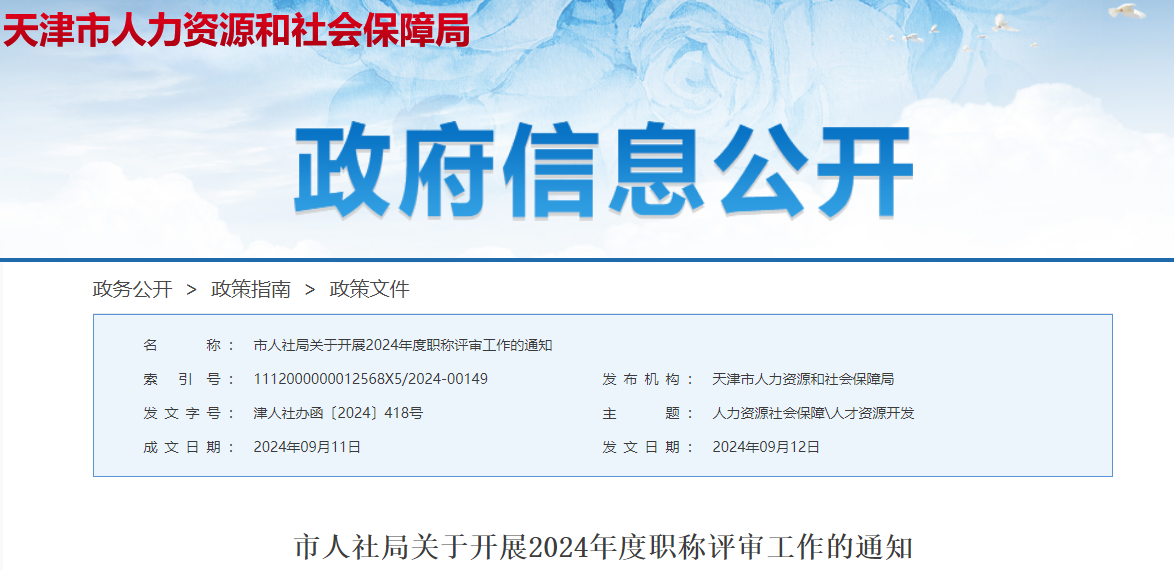 天津市人社局關(guān)于開(kāi)展2024年度職稱(chēng)評(píng)審工作的通知