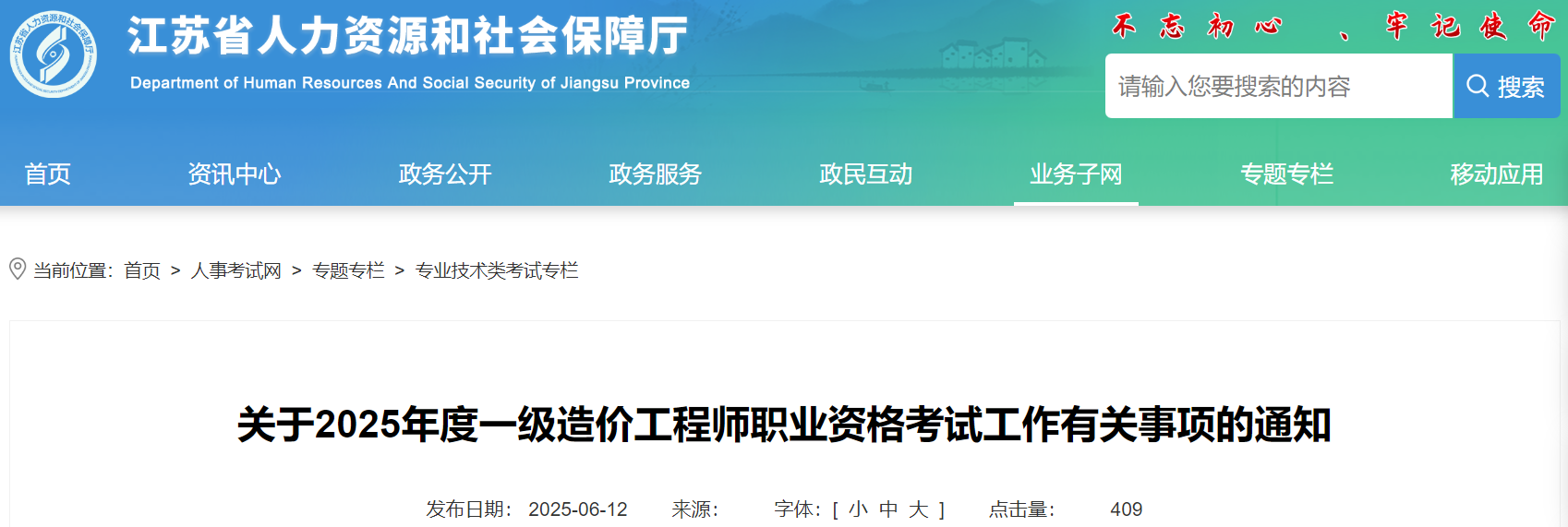 關于江蘇省2025年度一級造價工程師職業(yè)資格考試工作有關事項的通知