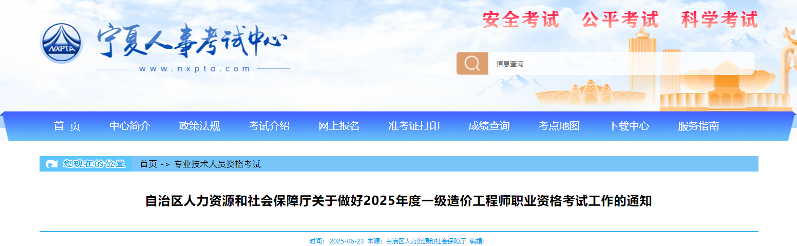 寧夏考區(qū)2025年度一級(jí)造價(jià)工程師職業(yè)資格考試工作的通知
