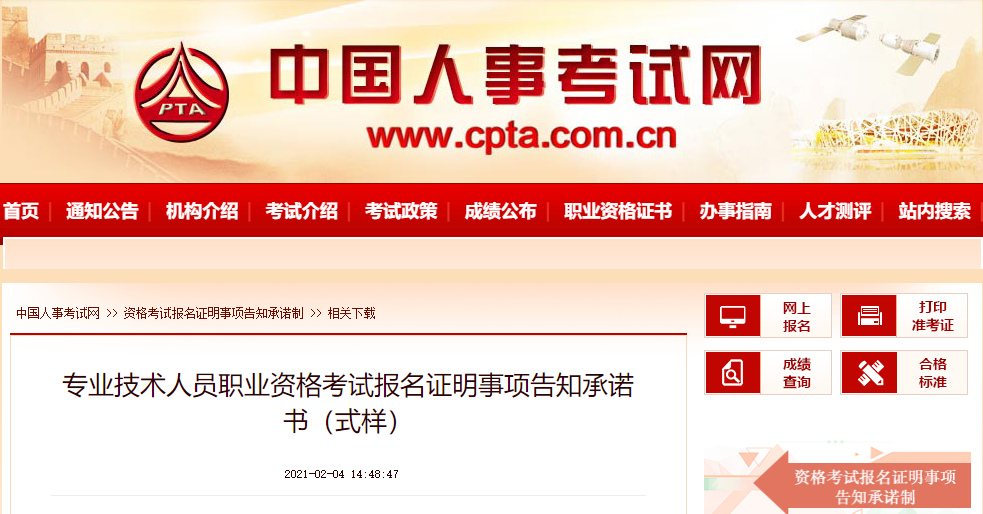 附件下載:專業(yè)技術(shù)人員職業(yè)資格考試報(bào)名證明事項(xiàng)告知承諾書(shū)(式樣)