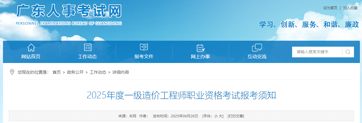 根據(jù)人力資源和社會保障部人事考試中心《關(guān)于2025年度一級造價工程師職業(yè)資格考試考務(wù)工作的通知》(人考中心函〔2025〕22號)和廣東省人力資源和社會保障廳《關(guān)于廣東省人力資源社會保障系統(tǒng)2025年度專業(yè)技術(shù)人員職業(yè)資格考試工作計劃及有關(guān)事項的通知》(粵人社函〔2025〕26號)要求,為方便廣大考生報考該項考試,現(xiàn)將有關(guān)事項告知如下。