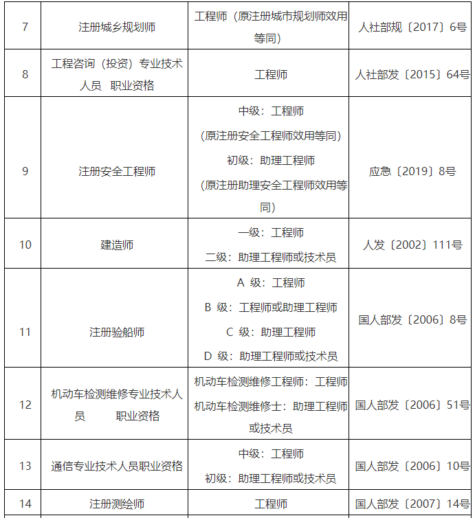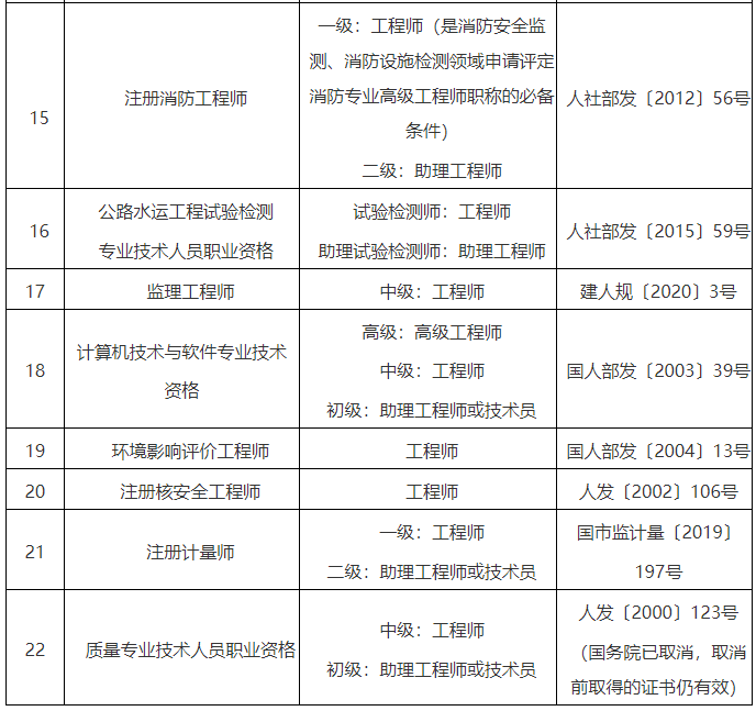第二十六條工程技術(shù)人才取得的工程領(lǐng)域?qū)I(yè)技術(shù)類職業(yè)資格,可對應(yīng)相應(yīng)層級的職稱(見附件),并可作為申報高一級職稱的條件。