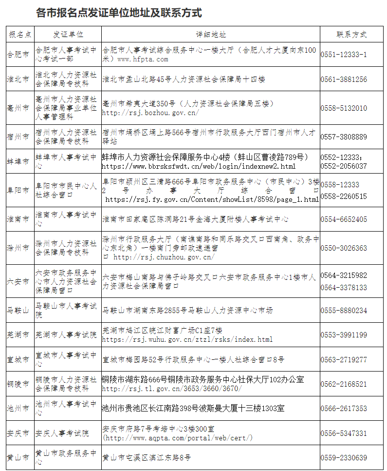 附:各市報(bào)名點(diǎn)發(fā)證單位地址及聯(lián)系方式