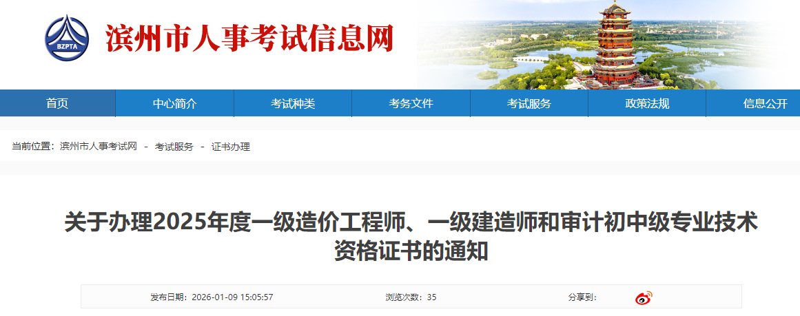 濱州市2025年度一級(jí)造價(jià)工程師、一級(jí)建造師和審計(jì)初中級(jí)專業(yè)技術(shù)資格證書已下發(fā)至我市,現(xiàn)將有關(guān)事項(xiàng)通知如下:
